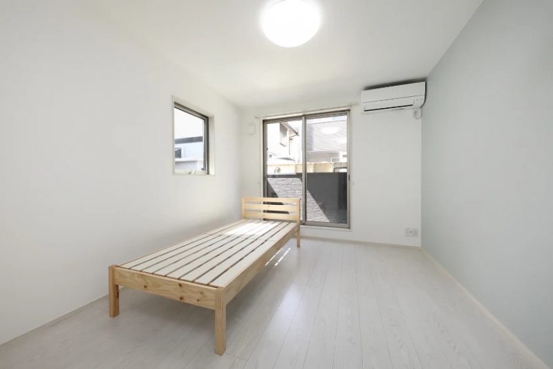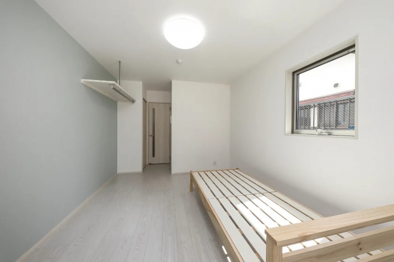 個室設備 バス・トイレセパレート、浴室乾燥機、独立洗面台、温水洗浄便座、IHキッチン(2口)、室内洗濯機置場、洗濯機、収納ベッド、シューズボックス、照明器具、家具家電付き、冷蔵庫、電子レンジ、クローゼット、モニター付インターホン、インターネット対応(無料)、バルコニー、防犯シャッター(一部)