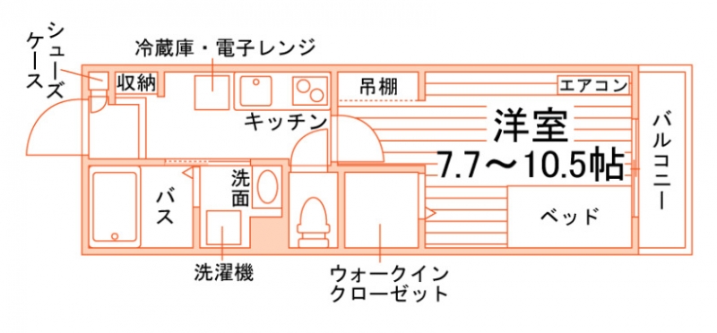 | 個室設備 | バス・トイレセパレート、追い炊き機能、浴室乾燥機、独立洗面台、温水洗浄便座、IHキッチン(2口)、室内洗濯機置場、洗濯機、エアコン、ベッド、シューズボックス、照明器具、家具家電付き、冷蔵庫、電子レンジ、ウォークインクローゼット、収納(一部)、モニター付インターホン、インターネット対応(無料)、バルコニー、防犯シャッター(一部) | ||