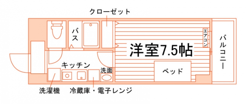 | 個室設備 | バス・トイレセパレート、独立洗面台、温水洗浄便座、ガスキッチン(1口)、室内洗濯機置場、洗濯機、エアコン、ベッド、照明器具、家具家電付き、冷蔵庫、電子レンジ、クローゼット、モニター付インターホン、インターネット対応(無料)、バルコニー | ||