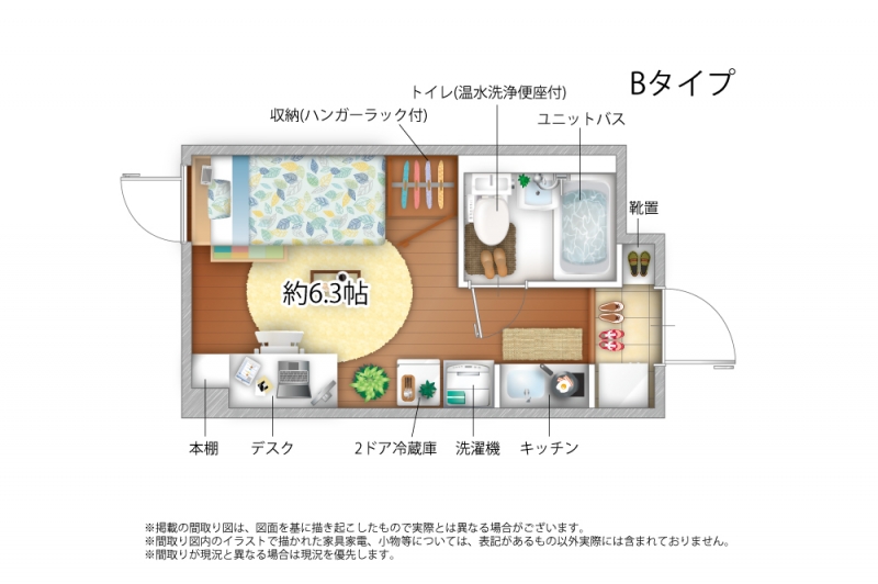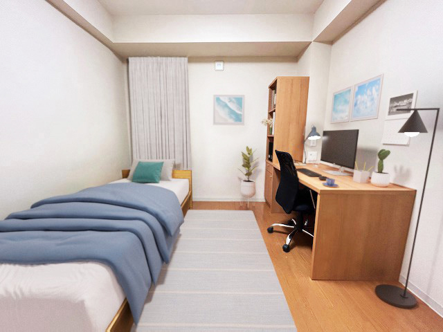 | 個室設備 | 3点ユニットバス、温水洗浄便座、IHキッチン(1口)、室内洗濯機置場、エアコン、シューズボックス、家具家電付き(2ドア冷蔵庫、洗濯機、ベッド、デスク、チェア、本棚、照明)、収納、モニター付インターホン、インターネット対応、Wi-Fi | ||
