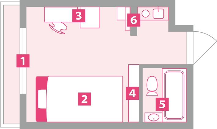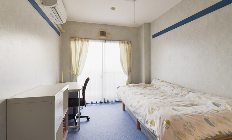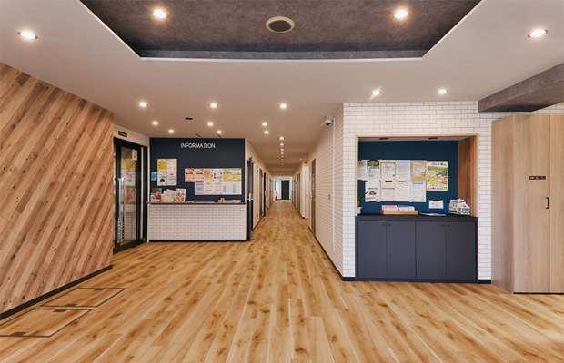4階建の建物内に3タイプの個室が全室あり、広さは約15~20㎡といずれも一人暮らしには充分。居室内はユニットバスやミニキッチンといった設備はもちろん、生活に必要な家具・家電が備え付けです。また、玄関から居室まで内廊下となっており、さらに4階部分が女性専用フロアになっているので、女子学生の方もよりいっそう安心して暮らすことができます。